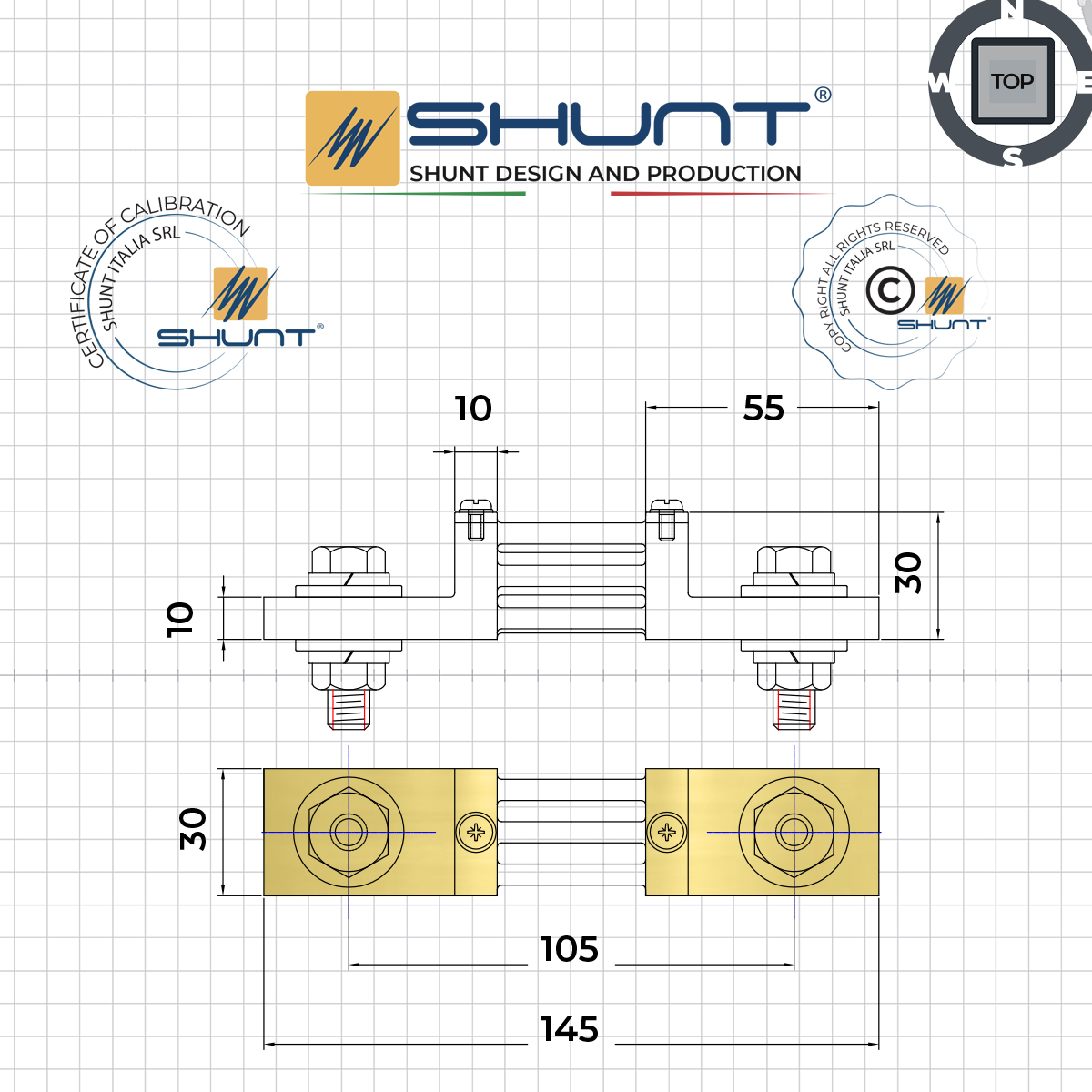 Mounting: Shunts must be installed in a vertical position to favor conventional free flow of air. If vertical mounting is not practical, forced air cooling or adding heat sinks to blocks can reduce the operating temperature. the resistances (manganin) must never exceed + 145 ° C, otherwise permanent changes in resistance could occur.