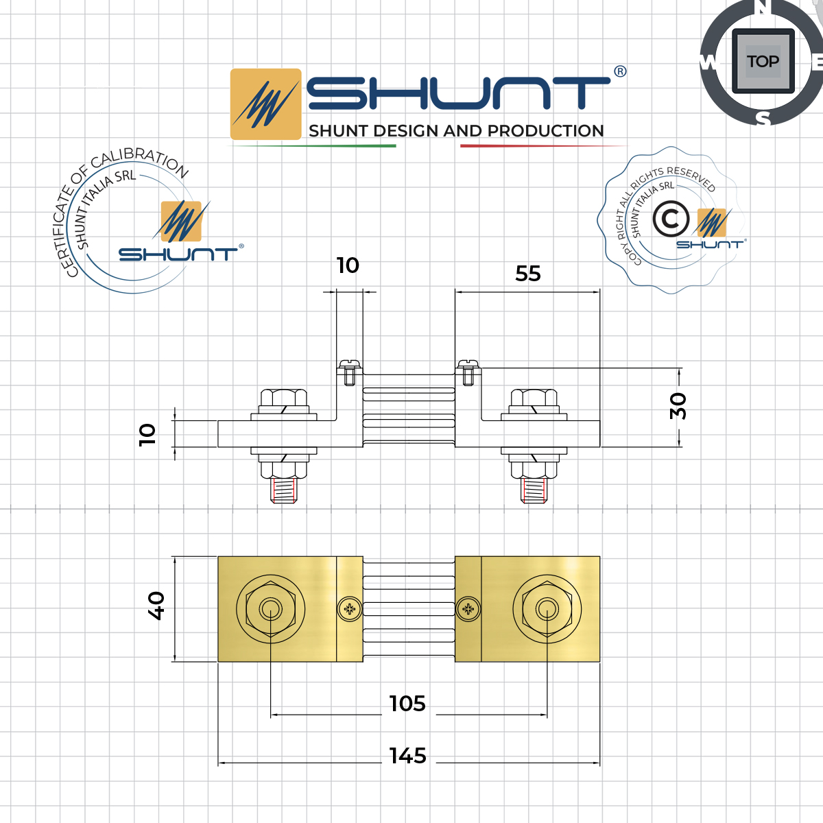 Mounting: Shunts must be installed in a vertical position to favor conventional free flow of air. If vertical mounting is not practical, forced air cooling or adding heat sinks to blocks can reduce the operating temperature. the resistances (manganin) must never exceed + 145 ° C, otherwise permanent changes in resistance could occur.