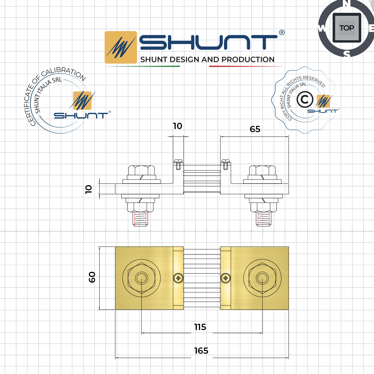 The shunts in this range are built according to DIN 43703 and are supplied on an insulating basis upon request for both 60mV, 100mV and 150mV. the body of the shunt can be in brass or also in copper according to the requests of our clients.